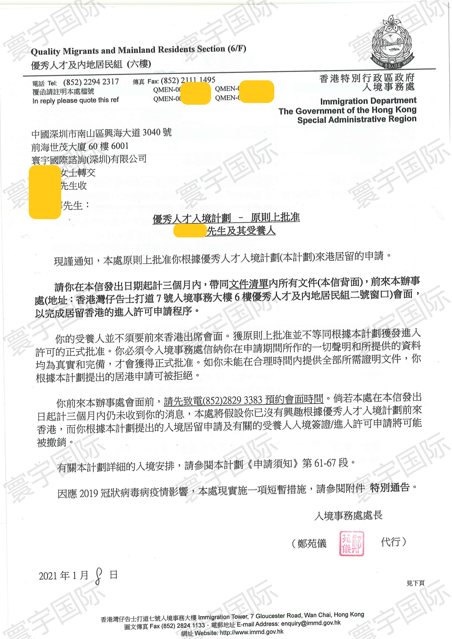 【香港优秀人才】恭喜金融专家W先生成功获批!