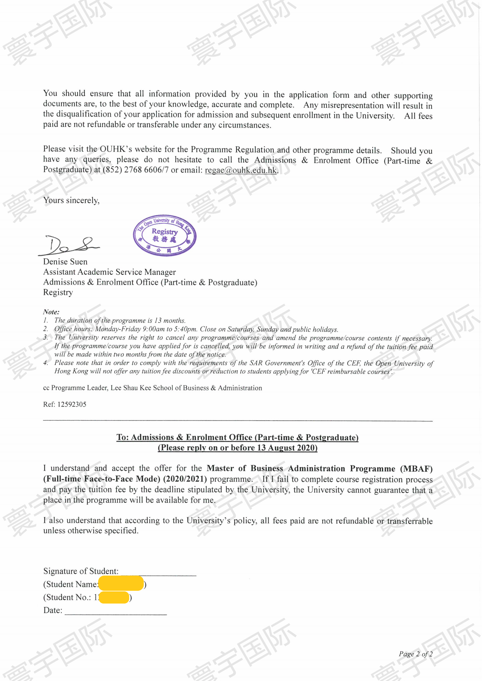【香港留学移民】恭喜X女士获得香港公开大学硕士录取通知